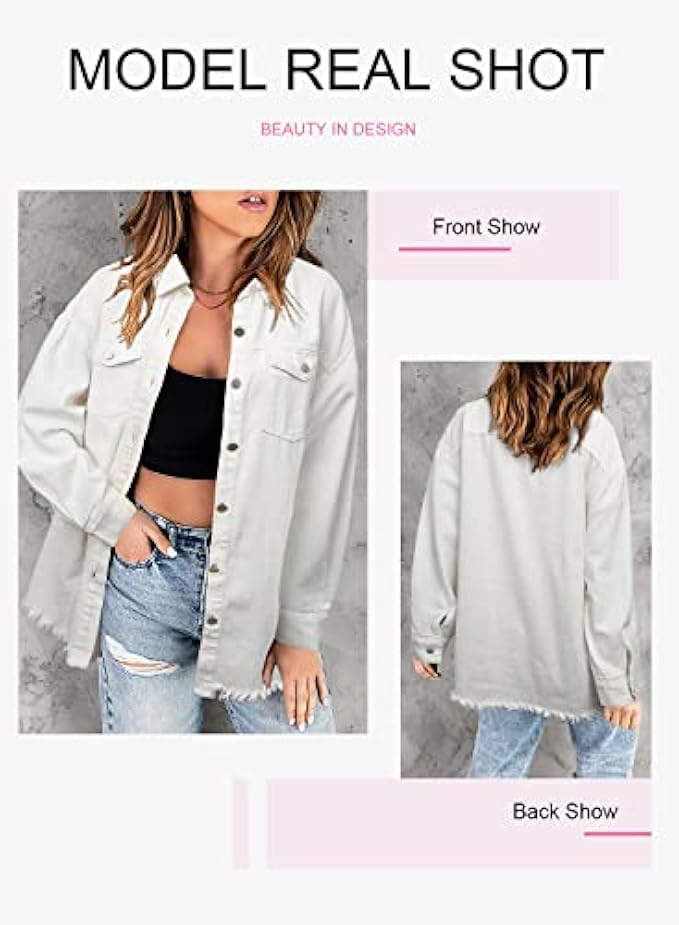 Dokotoo Women's Oversized Denim Jacket Casual Long Boyfriend Distresse Jean Jacket Autumn Spring