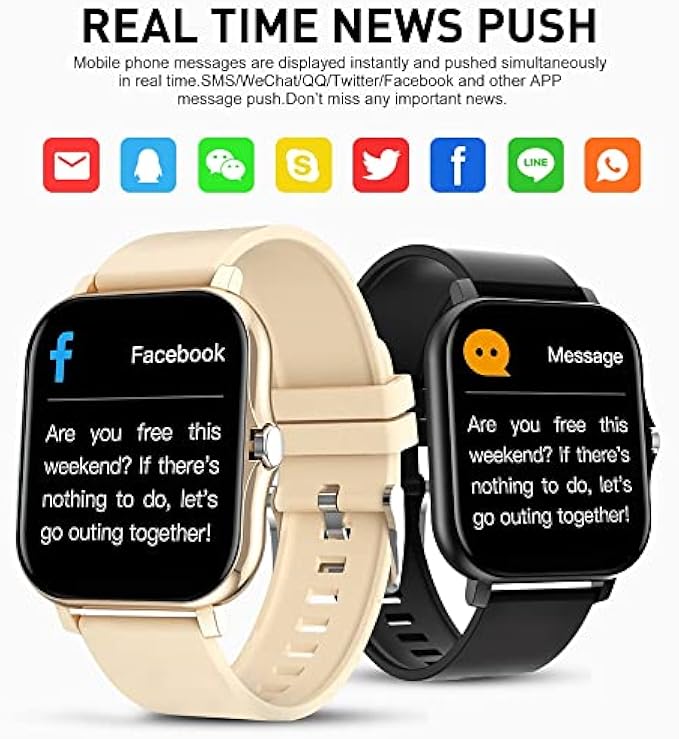 【?1.69'' Touch Screen & Custom Watch Face】The smartwatch with 1.69'' screen can provide you with high-quality touch and visual experience. After the bracelet is connected with the Mobile app, you can download all kinds of exquisite dials form the Mobile app. You can also turn the scenery and beautiful pictures in the mobile phone into the background of the dial to meet the diversified needs of your. 【?All-day Activity Tracking】This smart watch has 7 kinds of sports modes(bike riding, Running, Tennis, Strength training, Basketball, Volleyball, Football). Via watch tracker can provide 24hrs Real Time monitoring, calories burned counter, steps counter, allow you to get the real-time stats during your workouts on the watch. Smart watches for men and women are the best choice for sports. 【?24/7 Heart Rate Monitor & Sleep Tracker】Smartwatch fitness tracker can provide all-around body data tracking, real time monitor your heart rate, blood pressure, blood oxygen (SpO2) and your deep, light sleep state which can help you better understand your health. 【?Smart Notifications】After the smart watch is connected with Mobile phone app, when there is a message from SMS or social app(WeChat、QQ、Facebook、Twitter、Line、Whatsapp、Instagram), the bracelet will vibrate to remind you. Stay connected with calls, text, other app notifications, and convenient tools like timer, Alarm clock, Stopwatch, Music controller, Weather, Sedentary reminder, Find your phone, etc. to meet your daily use. 【?Smartwatches For Android IOS Phones】The sports watch is compatible with iOS 9.0 and Android 5.0 and above devices(not for PC or tablet). Download and install the Mobile phone app, bind the smartwatch to your cell phone. You can make and receive calls on the watch or online music, and you can receive alerts of the SMS, incoming calls, and SNS. 【?Great Battery Life 】When fully charged in 2.5 hours, it lasts for 7 days, with standby time exceeding 30 days. You can relax and enjoy more than a week of travel or work. ?NOTE:Please read the manual carefully before using these functions to understand how to connect to bluetooth.