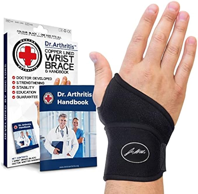 Dr. Arthritis Doctor Developed Copper Wrist Brace/Wrist Wrap/Carpal Tunnel/Wrist Support/Wrist Splint/Hand Brace -F.D.A. Medical Device & Doctor Handbook-Night Support for Women Men-Right & Left Hands