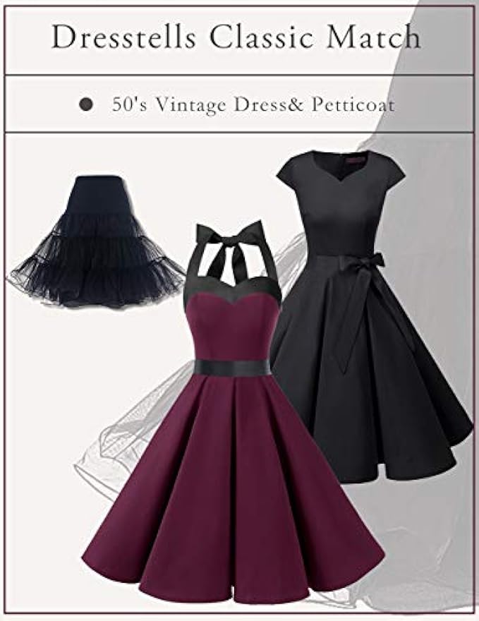 DRESSTELLS 1950s Dresses for Women, Vintage Dresses, 50s Retro Pinup Homecoming Dress with Sleeve Belt