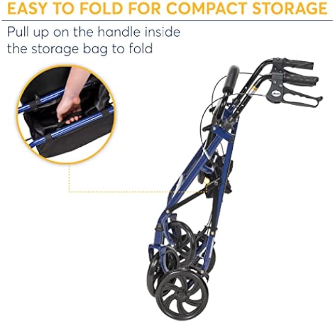 Foldable Rollator Walker: Portable rollator with side-to-side folding design allows easy folding with one hand and maintains a standing position, making this folding walker exceptionally easy to roll, park, and store anywhere