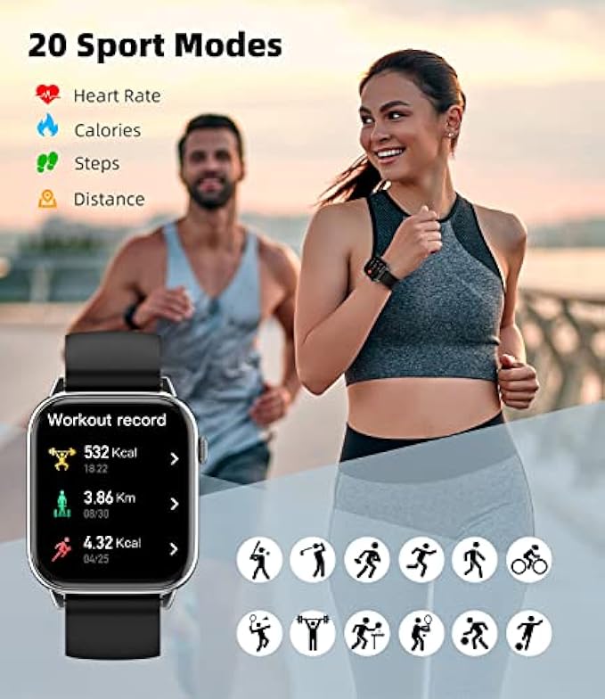 【Bluetooth Call/ AI Voice Assistant】 EGQINR smart watch with built-in high-fidelity speaker and microphone. After connecting to dual Bluetooth, you can answer/ make calls and view call records on the watch directly. Add a quick address book in FitCloudPro app. AI voice assistant, adopts a multi-analog voice interactive system, click to wake up, and speak to complete the command operation. Completely liberate hands and make your life more convenient. 【Health Monitor On The Wrist】Smart watches for women men can help you monitor your physical and mental health in real time. It supports 24/7 health monitoring of blood pressure, heart rate and scientifically monitor sleep quality all night ( from 9:30 pm to 12:00 noon). There are breathing training, drinking water and sedentary reminder. In addition, it also has female health records and reminders, such as menstrual periods, pregnancy preparations, pregnancy periods, etc. 【All Day Activity Trackers】iOS android smart watch comes with 20 sport modes. It uses smart exercise data analysis to track your exercise time, heart rate, calories, steps, distance and speed in real time. Record data while exercising to get a clearer picture of your fitness trajectory. It also supports playing music while exercising. IP67 waterproof smartwatches meet your daily hand washing or wearing in rainy days. NOTE: Can not soak in the water for a long time, as well as deep diving and hot baths. 【1.68" Large Color Display】Smart watch for android phones adopt newly upgraded Realtek 8762DK to provide a smoother operation. 1.68-inch curved colorful touch screen, 240*280 pixels bringing you a more clearer and wider visual enjoyment, making every message clearer. Smart watch for iphone compatible has a rotating side button, which can directly switch dials, scroll up and down, zoom icons, and quickly double-click to switch 10 different menu styles, making the operation more easier. 【More Useful Functions】It supports editing time directly on the watch. Receive notifications of SMS, and text (Instagram, Twitter, WhatsApp, etc), *but can NOT reply messages. More useful functions like music control, weather, find phone/ watch, stopwatch, timer, alarm, games, receipt code, social code, calculator, NFC door card. If you have any problems, please feel free to contact us and we will reply you as soon as possible. Find order---Contact seller