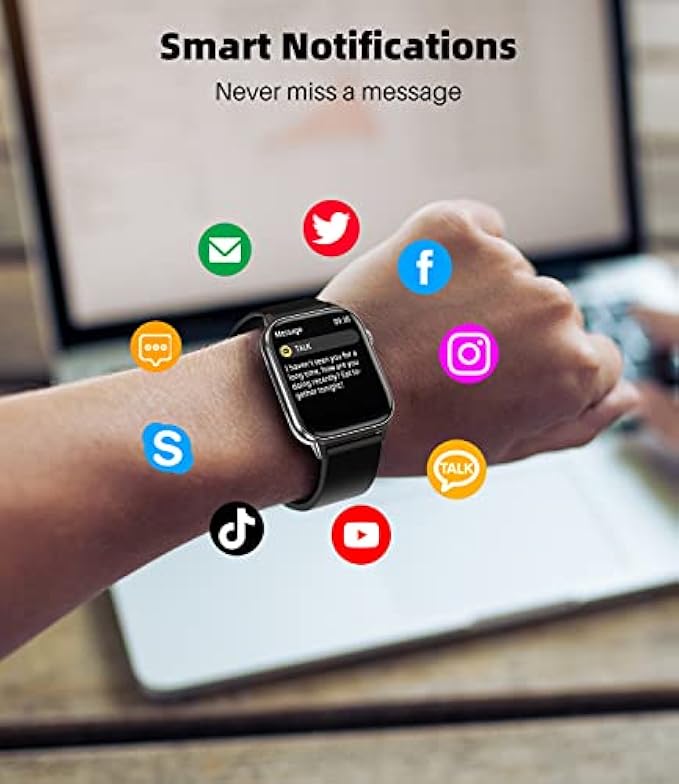 【Bluetooth Call/ AI Voice Assistant】 EGQINR smart watch with built-in high-fidelity speaker and microphone. After connecting to dual Bluetooth, you can answer/ make calls and view call records on the watch directly. Add a quick address book in FitCloudPro app. AI voice assistant, adopts a multi-analog voice interactive system, click to wake up, and speak to complete the command operation. Completely liberate hands and make your life more convenient. 【Health Monitor On The Wrist】Smart watches for women men can help you monitor your physical and mental health in real time. It supports 24/7 health monitoring of blood pressure, heart rate and scientifically monitor sleep quality all night ( from 9:30 pm to 12:00 noon). There are breathing training, drinking water and sedentary reminder. In addition, it also has female health records and reminders, such as menstrual periods, pregnancy preparations, pregnancy periods, etc. 【All Day Activity Trackers】iOS android smart watch comes with 20 sport modes. It uses smart exercise data analysis to track your exercise time, heart rate, calories, steps, distance and speed in real time. Record data while exercising to get a clearer picture of your fitness trajectory. It also supports playing music while exercising. IP67 waterproof smartwatches meet your daily hand washing or wearing in rainy days. NOTE: Can not soak in the water for a long time, as well as deep diving and hot baths. 【1.68" Large Color Display】Smart watch for android phones adopt newly upgraded Realtek 8762DK to provide a smoother operation. 1.68-inch curved colorful touch screen, 240*280 pixels bringing you a more clearer and wider visual enjoyment, making every message clearer. Smart watch for iphone compatible has a rotating side button, which can directly switch dials, scroll up and down, zoom icons, and quickly double-click to switch 10 different menu styles, making the operation more easier. 【More Useful Functions】It supports editing time directly on the watch. Receive notifications of SMS, and text (Instagram, Twitter, WhatsApp, etc), *but can NOT reply messages. More useful functions like music control, weather, find phone/ watch, stopwatch, timer, alarm, games, receipt code, social code, calculator, NFC door card. If you have any problems, please feel free to contact us and we will reply you as soon as possible. Find order---Contact seller