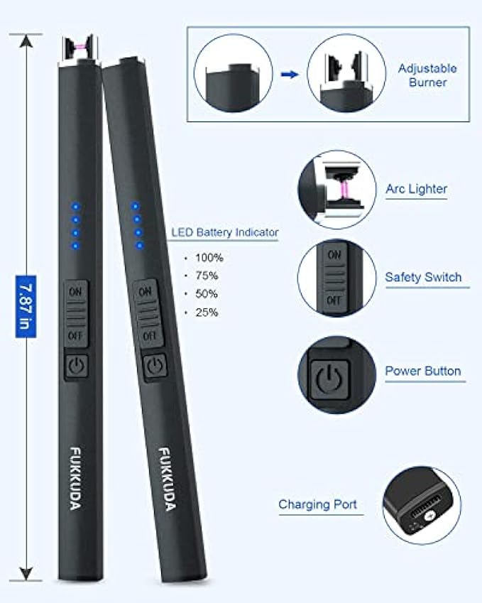 【Born For Safer Ignition】- 7s Auto Off: The electric arc will automatically turn off after 7 seconds per use. Double safety switch: The power button is under the safety switch, avoiding accidental touches of the ignition button when you put it in your pocket or bag. During ignition, there will be a "zee,zee" noise, which is a normal operation sound, please use with ease.