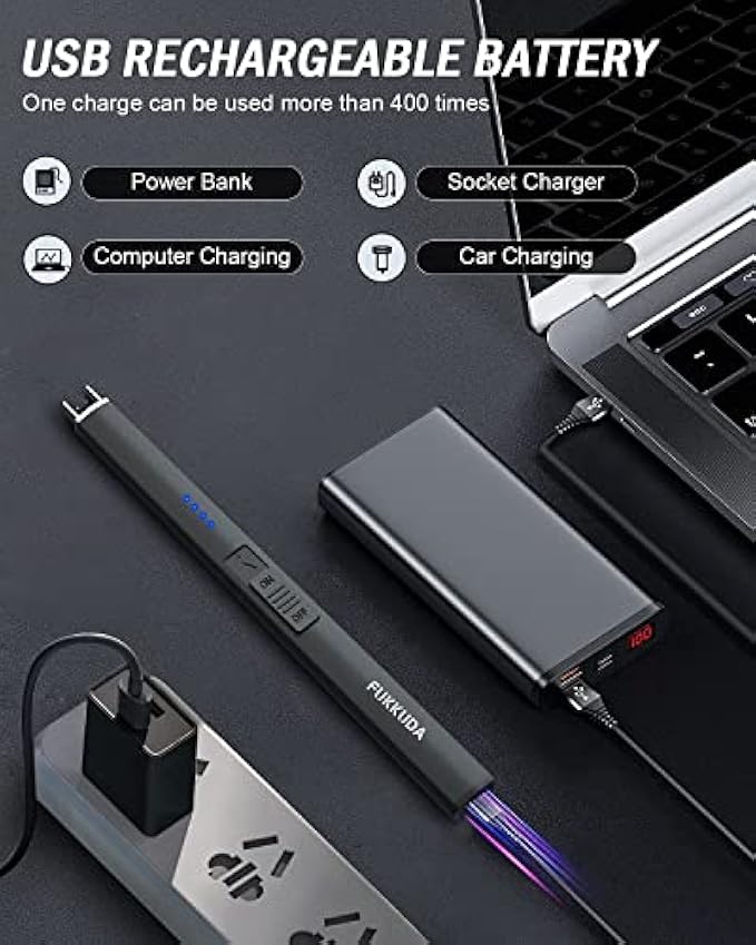 【USB Rechargeable】- No need to refill the lighter ever! Built-in large capacity battery, and power indicator lights to remind you when it should be charged. The portable USB cable can connect to power source such as computers, power bank and etc.