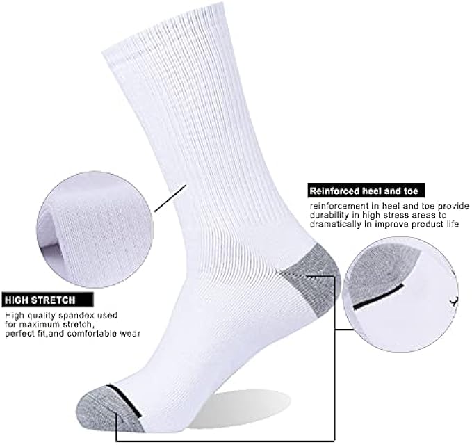 EnerWear 10P Pack Men's Cotton Moisture Wicking Heavy Cushion Crew Socks