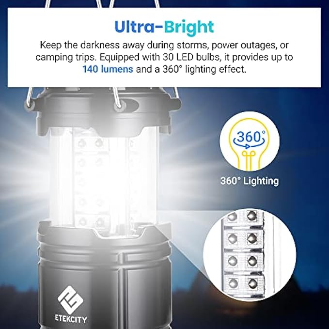 Brighten Camping: This camping light has 30 LED bulbs that emit 140 lumens of light, providing a bright illumination for your camping trip with a 360° lighting range