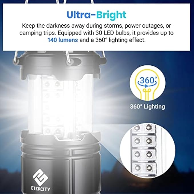 • Bright & Dimmable:Equipped with 30 bright LED bulbs, this lantern can get as bright as 140 lumens with a 360° lighting effect to dispel the darkness during emergencies like storms, power outages, etc.