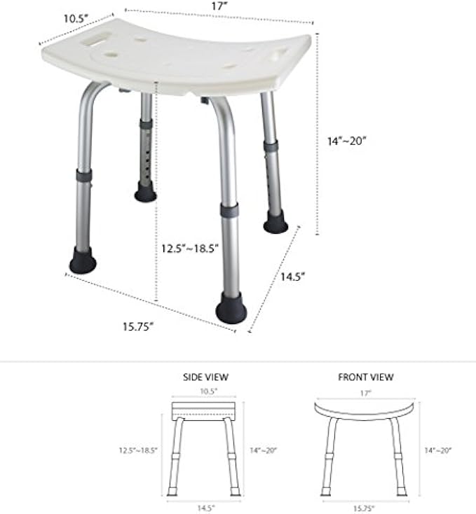 Ez2care Adjustable Lightweight Shower Bench, Bathtub Stool, White, 12.5 to 18 inch