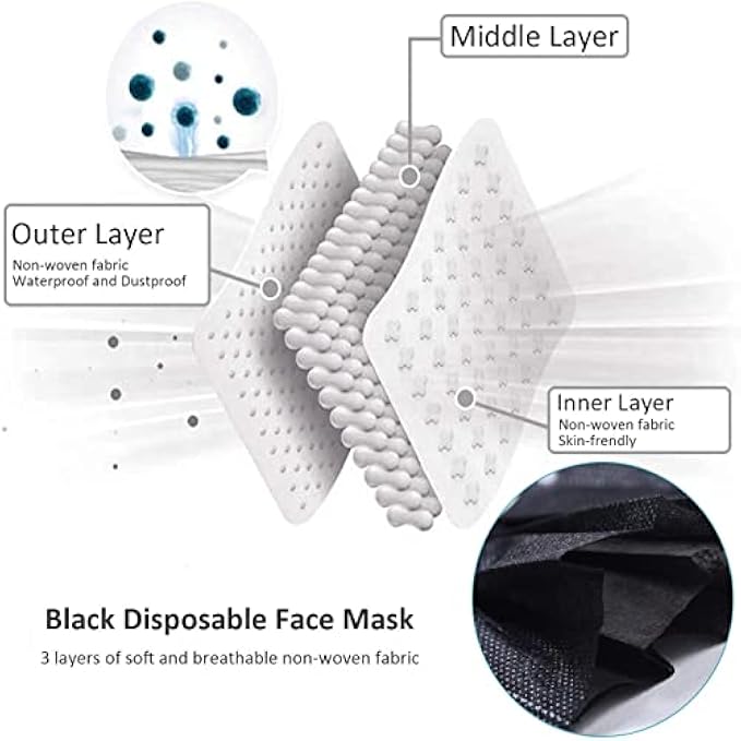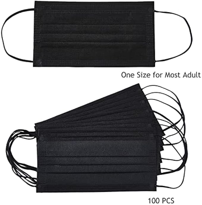 Face Mask 100PCS Adult Black Disposable Masks 3-Layer Filter Protection Breathable Dust Masks with Elastic Ear Loop for Men Women