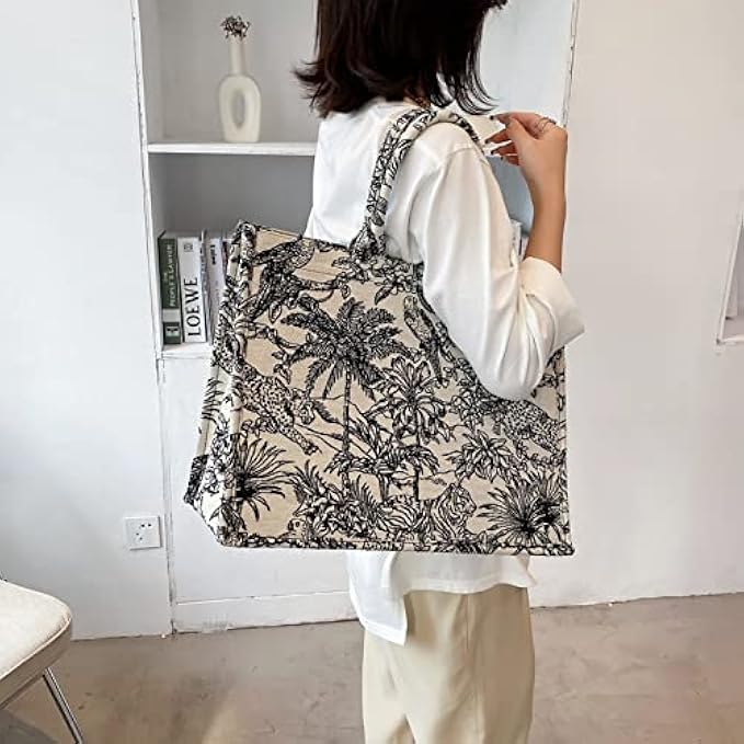 Fashion luxury tote bag cotton linen one shoulder handbag large capacity jacquard embroidery retro exquisite graffiti(L)