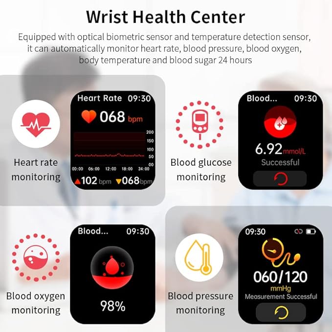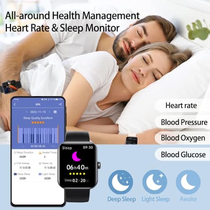 ✨【New Slim Women's Smartwatch】This FILIEKEU blood glucose smart watch for women and men has a 1.91 inch square screen, ultra-thin body, ultra-narrow bezel, large full touch screen, metal side bezel, more stylish and textured, providing you with a high quality touch and visual experience ✨【IP68 waterproof rating】This ladies black silicone smartwatch has an IP68 waterproof rating, so you can easily travel in the rain and wash your hands without the hassle of removing the watch, making it more comfortable and simple to wear ✨【50 sports modes】This FILIEKEU couple fitness smartwatch has 50 sports modes, clearly record your exercise time, calories, more accurate arrangement of exercise plan, make exercise no longer difficult ✨【Health Activity Tracker】FILIEKEU stainless steel mesh band smart watch for women, with blood oxygen, blood pressure, blood sugar and body temperature, sleep and other monitoring functions, compared to other ordinary watches do upgrade, more attention to your body condition [Note: these can not be used as medical data] ✨【Important Notifications】 This couple smartwatch has a message reminder function, never miss an important notification even if your phone is in your pocket; sedentary reminder, so you can pay attention to your health at work and stretch your body in time; female physiological period, predict in advance to avoid embarrassing scenes in important occasions ✨【Practical functions】Remote control for taking photos, making it easier for couples to take photos and girlfriends to gather, recording beautiful moments at any time, remote control for music, no need to take out your phone to switch music when exercising, lift your wrist to operate, saving time and effort ✨【Longer Battery Life】 Only 2 hours to charge, can be used for 3-7 days, standby for 30 days after fully charged. [Note: subject to personal use and frequency]. The watch supports finding your phone when connected to Bluetooth and can automatically sync your phone's language to make operation more convenient ✨【Compatible with Android and IOS】 Our smartwatch can be compatible with iOS 9.0/Android 4.4 and above, touch screen control, smooth connection and easy operation ✨【Personalized interface】You can choose your favorite pictures, such as family, lovers, pets, scenery, etc., set up your watch interface only, show your own style ✨【Beautiful gift and the strongest after-sales service】 The watch comes with a comfortable and soft silicone strap and an additional stainless steel mesh strap with a width of 22mm and adjustable length size. A great gift for your best friend, or to use with your loved one. After you receive the product and you have any questions, you can leave us a message and we will reply to you as soon as we see the message and provide you with the most sincere after-sales service