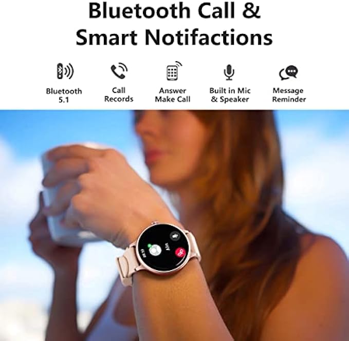 Immerse Yourself in Stunning Visuals -- FITVII HM58 activity trackers features a large clock face and impressive bright AMOLED display. Witness every detail come to life on your wrist, providing an unparalleled visual experience. Sleek Design -- The stylish and classic round design ensures that you can wear it for any occasion. With a variety of interchangeable bands and customizable watch faces, you can effortlessly express your individuality. Stay Connected--Make and reply to phone calls directly from FITVII smartwatch after connecting to your phone. All messages and notifications will show on your wrist and remind you via vibration. Stay connected with your loved ones even while you're on a trip or running errands. 24/7 Monitor Wellness & Sleep Tracking-- FITVII fitness tracker Keeps track of your health 24/7 with automatic monitoring of heart rate and blood pressure. (Only for reference, not for medical use) Upgraded Sleep monitoring helps you understand sleep patterns and improve the quality of rest. Keep Fit and Active-- Tracks steps, distance, and calories burned for all daily activities, keeping you motivated along the way. FITVII sports watch has 100+ exercise modes, whether you prefer yoga, cycling, or running will get you covered. Your Personal Voice Assistant---The Fitness smart watches built-in voice assistant that allows you to effortlessly manage music playback, ask questions, check the weather, set alarms, and much more. Experience the ultimate convenience of a voice assistant right on your wrist! Perfect Design--Designed for women, men, and kids, the FITVII fitness watches is compatible with iPhone iOS and Android devices. Simply connect to your smartphone and enjoy all the amazing features. Enhanced Enjoy Daily Features-- FITVII exercise watches offer all the features you need to enjoy your daily life, including a calendar, breath training, camera control, music control, real-time weather, alarm clock, stopwatch, timer, find watch, women's health, raise to wake, calculator, customize the dial, sedentary reminder, drink reminder, and more. Long Battery Life & Waterproof-- With up to 7 days of battery life and a waterproof design, the FITVII Pedometer is perfect for active lifestyles. (Battery life varies with use & other factors)