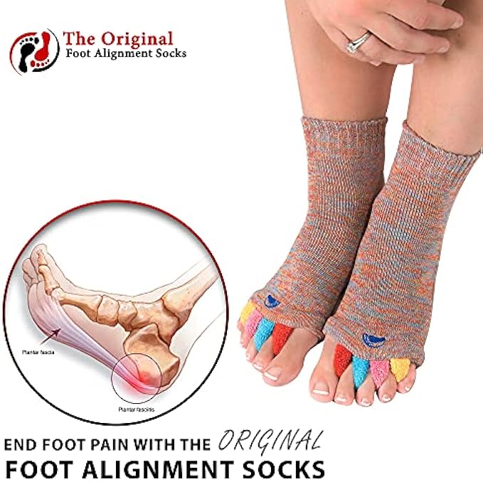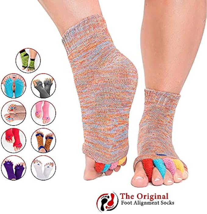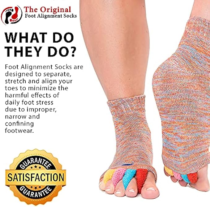 Multicolor Foot Alignment Socks for Men: The Original Foot Alignment Socks with toe spreaders for men are designed to separate, stretch and align your toes to minimize the harmful effects of daily foot stress. Relief from chronic foot pain is possible with the help of our men’s toe spreader socks.