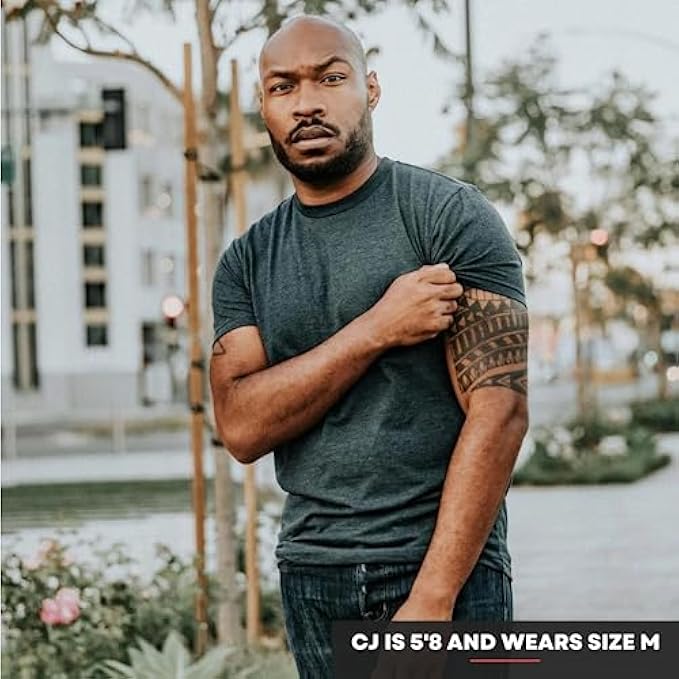 SOFT YET DURABLE FABRIC: Our very breathable charcoal crew neck t-shirt is machine-washable and made with an insanely comfy cotton-poly fabric blend that gives it a soft, lightweight feel that’s durable and long-lasting, thanks to high-quality material and strong stitching.