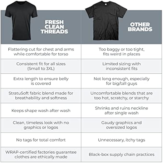 SOFT YET DURABLE FABRIC: Our very breathable variety pack crew neck t-shirt is machine-washable and made with an insanely comfy cotton-poly fabric blend that gives it a soft, lightweight feel that’s durable and long-lasting, thanks to high-quality material and strong stitching.