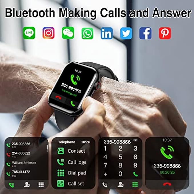 • ✅【New upgraded (Answer/Make Calls)Smart Watch】With built-in speaker and bluetooth connectivity, you can directly make or receive calls with your family and friends via the smartwatch, also it supports multiple smart reminders, including incoming calls, text, SNS messages (Facebook, WhatsApp, Twitter, etc), daily reminder, etc, extremely convenient for your life and you will never miss any important information.