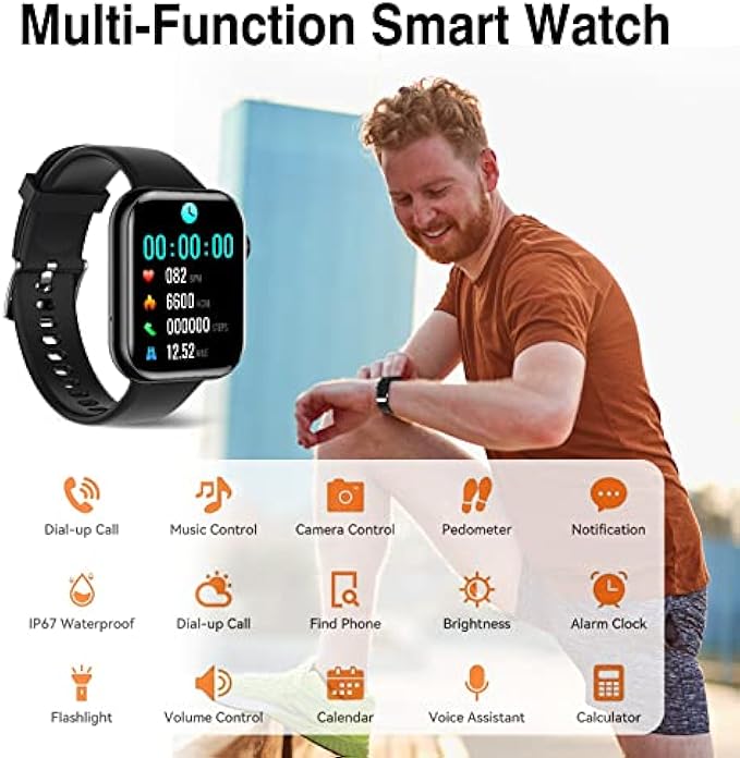 • ✅【Activity Tracker & More Features】 Smart watch has many practical tools such as alarm clock, stopwatch, music controller, weather, sedentary reminder, adjustable brightness, find your phone, etc. to meet your daily use. Support blood oxygen monitoring. Monitoring throughout the day, automatically and accurately track your heart rate and sleep data. Real-time analysis of your health status and sleep quality.