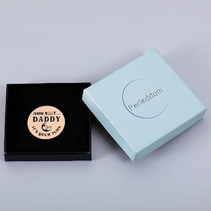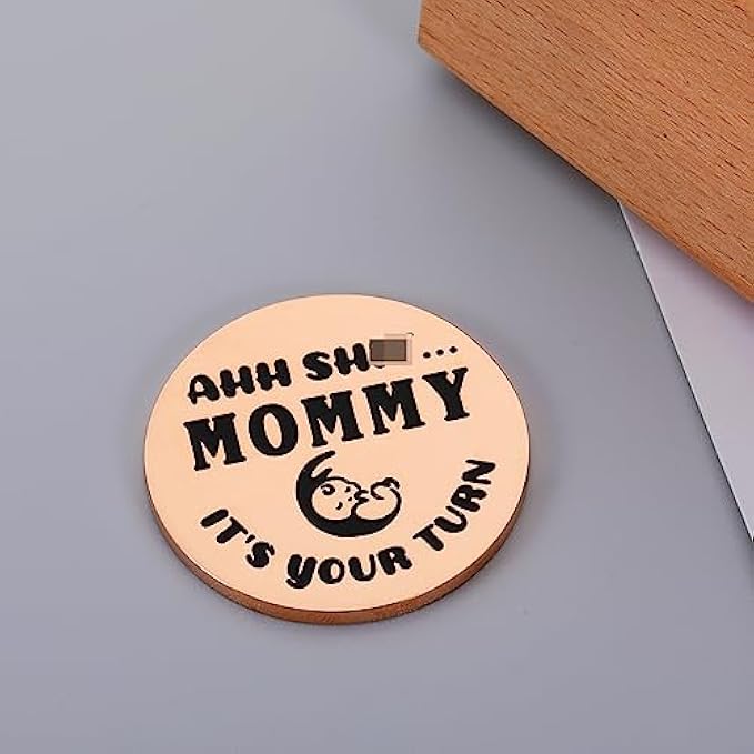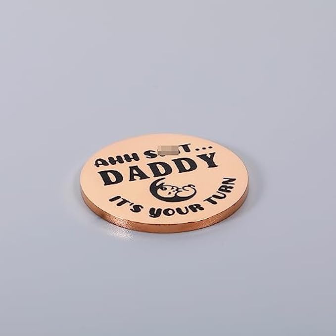 【Parents Decision Coin for Women Men】To all my new parents, this will help you make that forever dreaded decision... "Who's Turn is it to change the babies CRAPPY diaper or who's turn is it to get up and feed the baby?" So here it is, this will help you make that decision...Just FLIP the coin and there it is! "Ahh Shit...Mommy/Daddy it's your turn! Such a great fun gift for those new parents or for those parents that really need help in deciding their fate! 【Pregnancy Newborn Arrival Baby Gift】Whose turn will it be to change the diaper or give a bath? Flip the coin to find out. Perfect funny gift for the new mom and dad on Birthday, Christmas, Stocking Stuffers, Mother’s Day, Father’s Day, Thanksgiving, Hanukkah, Valentine's Day, Sweet Special Day, Family Dinner, Baby Child birthday. Perfect gift for baby shower, Christmas, birthday, gender baby reveal, pregnancy, family dinner for your spouse, couple . 【New Baby Gift for Mom Daddy Parent】Adorable Parent Gifts for new parents, first time dad/mom, new dad/mom, new daddy/mummy, expectant dad/mom, pregnant women, friends, family member, son, daughter, neighbor Women Man Mommy, Mom, M, Mama or Mami, and Daddy, Dad, Pa, Papa or Papi. A little gift for you and your husband, spouse, wife, or your BFF, sister, brother,colleagues, Coworker to celebrate them. Perfect small gifts for pregnant women to open a new chapter. 【Christmas Birthday Gift】New parents’ gift for expecting dad, mommy or daddy to be, new mum new dad, parents-to-be, Baby shower party, Hospital delivery, Gender baby reveal, Valentine's Day gifts, Easter gifts, the birth of baby gifts, family gathering gifts or the pregnancy gifts for new mother. Interesting coins can add a little joy for them. Perfect new parents gifts, first time dad gifts, expectant dad gifts, gifts for new mom, pregnancy gifts, mom and dad to be, top gifts for new moms. 【Eco-friendly & Safe Material】The keychain size:1.18 inch*1.18 inch*0.08 inch.This coin is made from stainless steel and include stainless steel rings.Engraved lettering is deep and clear which can read easily.Comes complete with a Pretty gift box! Ready to give!Thanks so much for visiting and have an amazing day!