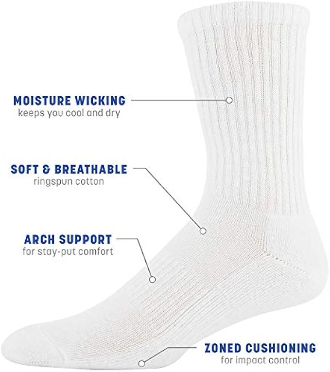 Gildan Men's Active Cotton Crew Socks, 10-pairs