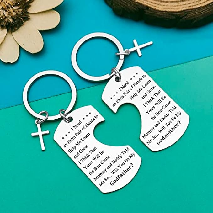 Godparent Keychain Godparent Gifts from Godchild for Baptism Godparents Announcement Gift Godparents Proposal Gift Christening Gift for Godmother Godfather First Communion Mothers Fathers Day Jewelry