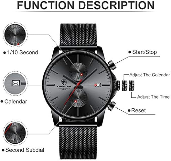 ⌚Sports chronograph: Multifunctional sub-dial can work, chronograph, calendar, run seconds. Provide you with multi-function purpose use.