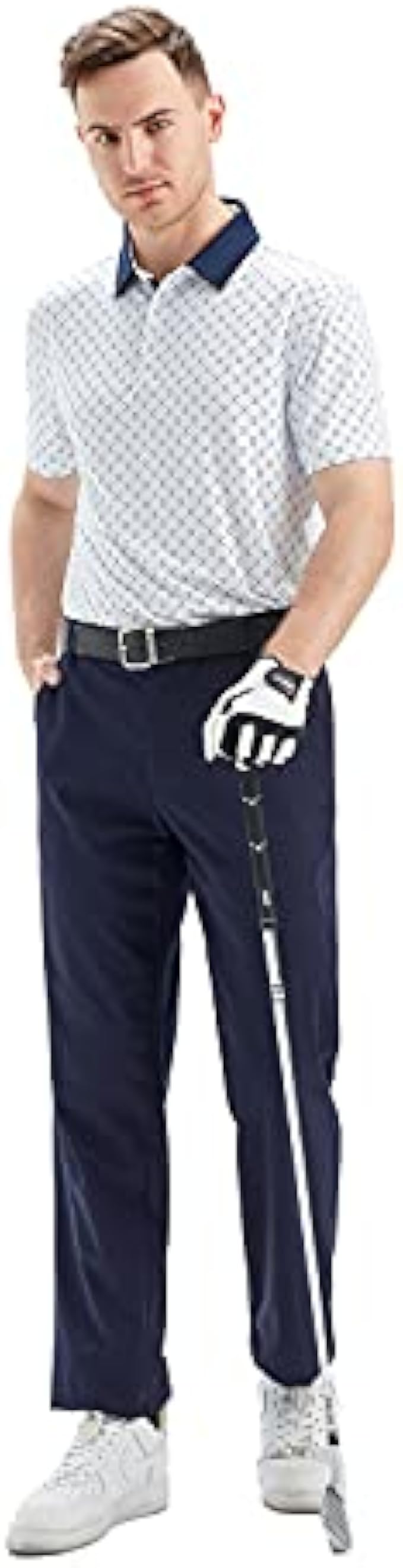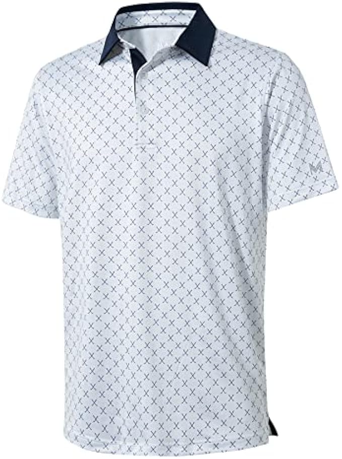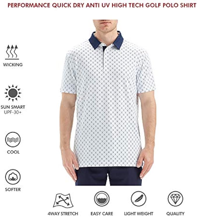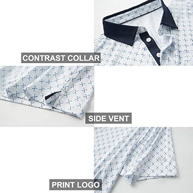 STYLE FEATURE: This golf polos for men use allover print stretch fabric with easy care and keep good shape, well-made stitching.