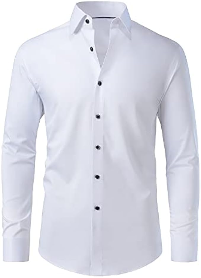 Gollnwe Men's Slim Fit French Cuff Stretch Bamboo Solid Dress Shirt