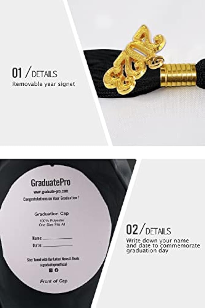 【Package Includes】Graduation Robe x 1 + Graduation Hat x 1 + Tassel x 1 + 2023 Year Charm x 1 (If you do not receive the 2023 year charm, please CONTACT US FIRST to arrange for you.)