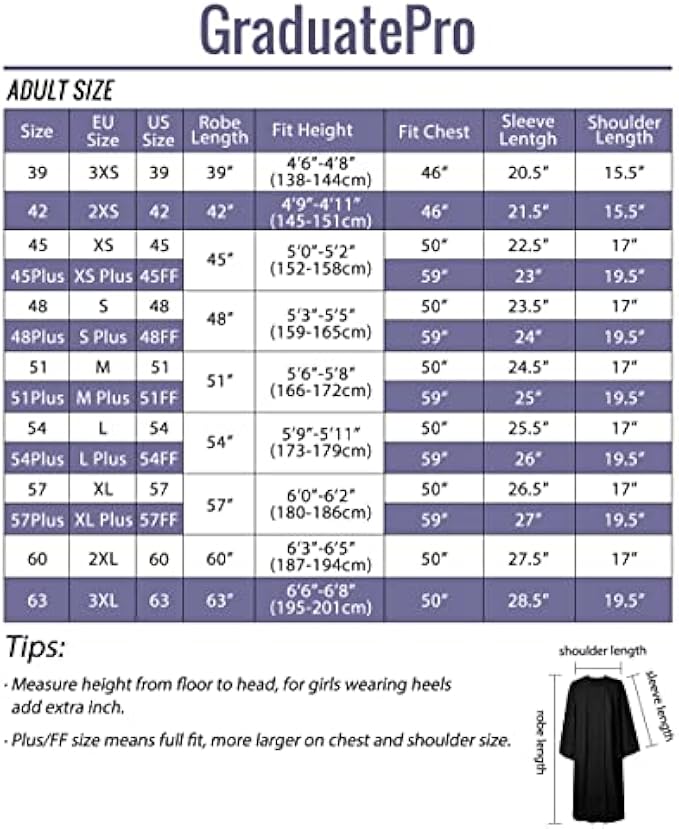 【Details】Convenient to put on and off with a hidden zipper closure in front of graduation gown, easy to recognize with strong center pleats on the front and back shoulder.