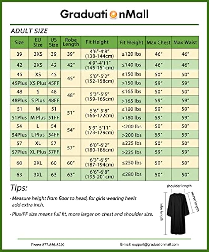 • Gown Size: Robe length 39 inchs, fits height from 4'6" to 4'8", max chest 46 inchs. Note: This is the loose style.