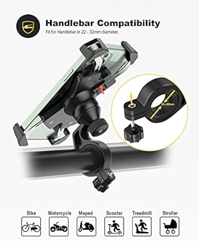 【Handlebar Compatible】Suit well with various types of bicycles, motorcycles, stroller, shopping cart, electric scooter, indoor treadmill, spin bike, any handlebar base diameter can range from 0.86 inch (22mm) to 1.25 inch (32mm) Inside.
