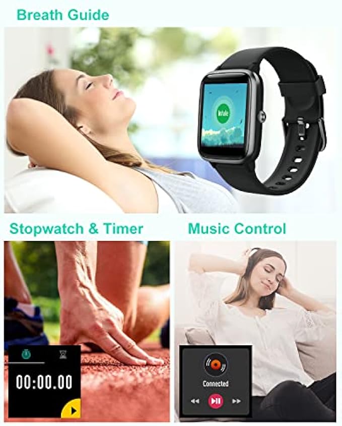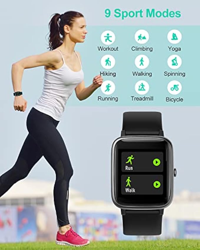 【Accurate Fitness Tracker with 9 Sport Modes】 This fitness tracker watch can accurately track calories burned, steps taken, sleep quality. 9 sports modes are optional, including various outdoor and indoor activities, allow you to get the real-time stats during your workouts on the watch. You can also connect it to smartphone's GPS to track all your workout routes and distance traveled during exercise. 【Smart Watch Compatible with iPhone Android Phones】- This smart watch is compatible with most iOS 8.0 & Android 4.4 or higher smart phones(Not for PC or tablet). Pair the smart watch to your phone and receive all incoming calls, messages, apps notifications straight to your smartwatch including Facebook, Instagram, Twitter, Whatsapp, and more. (Please note: only supports receiving calls and messages). 【Sleep Tracker】 This smart tracker watch will detect and track your sleep, and analyze your sleep quality automatically.(deep sleep, light sleep, and awake time). By connecting the smartwatch to your phone, the app will provide comprehensive analysis of your sleep quality to help you stay active and stay healthy:) 【Long-lasting battery & IP68 Waterproof Smart Watch】 When fully-charged, this watch can last for up to 7 days or 30 days standby time. With IP68 waterproof, this fitness watch can meet the waterproof requirements of your daily activities such as washing hands or working out in the rain with it. Whether it's sweat or a small splash, just handle it with ease. 【Smart Watch for Women Men with More Practical Features】 This watch can fit for 6.2-9.2 inch wrist, suits for both women and men. It has many practical features, such as female menstrual cycle tracker, alarm clocks, music control, stopwatch, timer, deep breath guide, sedentary reminder. It's a also very good choice as gift for your friends and family members to help them stay motivated all day!