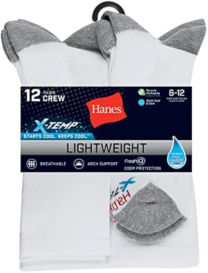 COOL & DRY - Wicking cool fabric and Fresh IQ technology help keep feet cool and dry, and prevent stinky feet, so you can be truly comfortable wearing these LTAC18 socks in any situation. Hanes X-Temp technology is designed to adapt to your body temperature, so you’ll be comfortable all day.