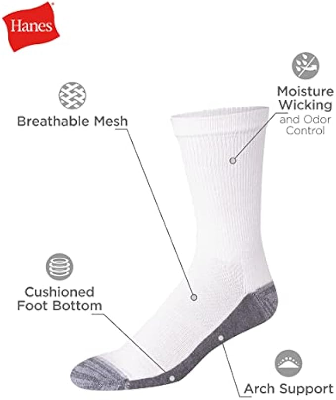 Hanes Men's Socks, X-Temp Cushioned Crew Socks, 12-Pack