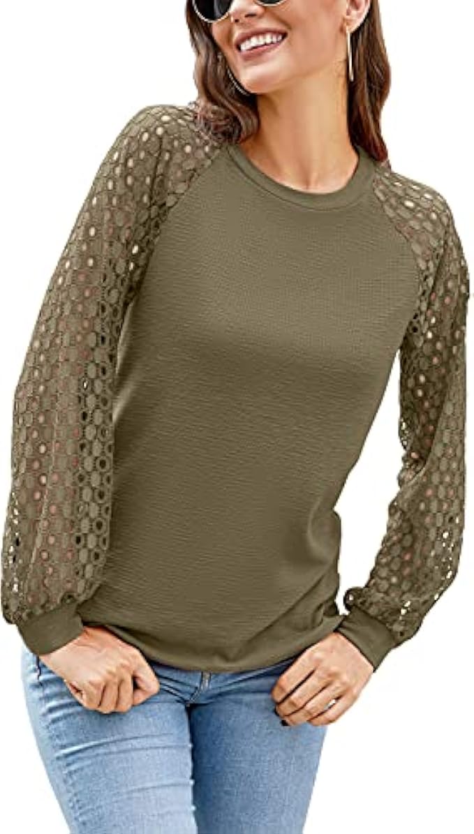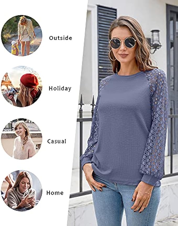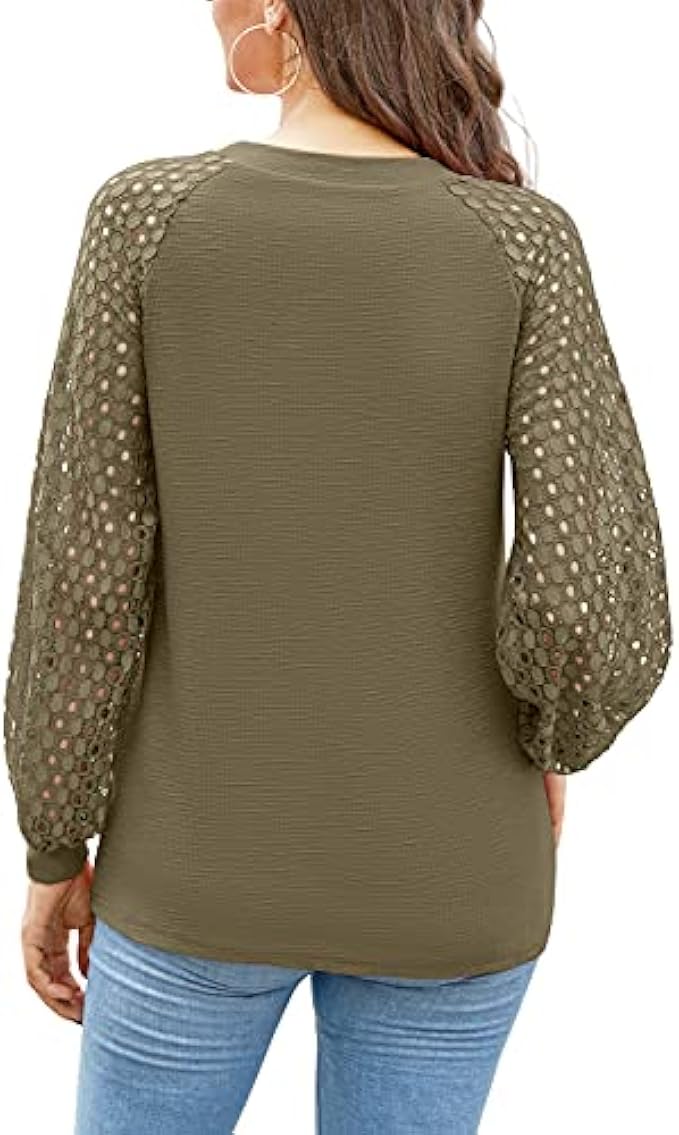 HAOMEILI Women’s Long/Short Sleeve Tops Lace Shirt Casual Loose T Shirts Blouses