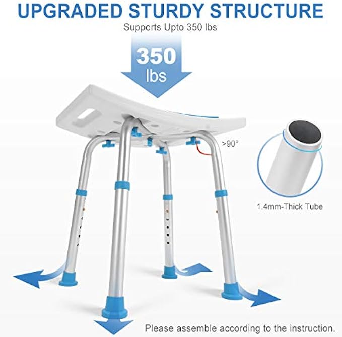 ❤️Tool-Free Assembly & Easy to Use: Easily assembles in minutes, no tool required. Only 7 lbs, with built-in handle, this stool is lightweight and portable for entering or exiting the bathtub.