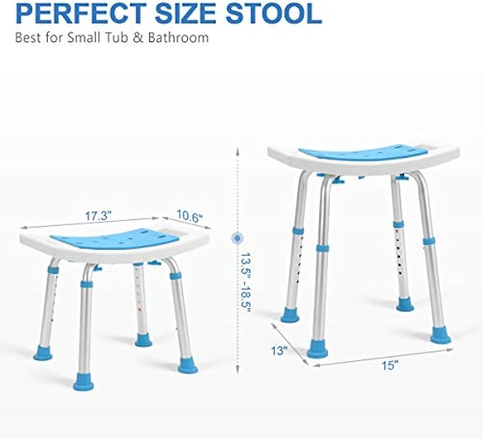 ❤️Adjustable Shower Stool for Smaller Tubs and Bathrooms: This shower chair can be adjusted from 13.5 inch to 18.5 inch, fits all bathrooms - especially for smaller or narrower tubs.