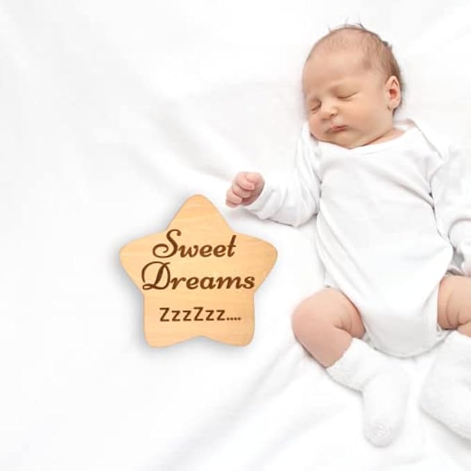 6 Adorable star-shaped baby milestone cards with double-sided engraving. 12 Unique gender-neutral designs of your newborn special occasions and moments.