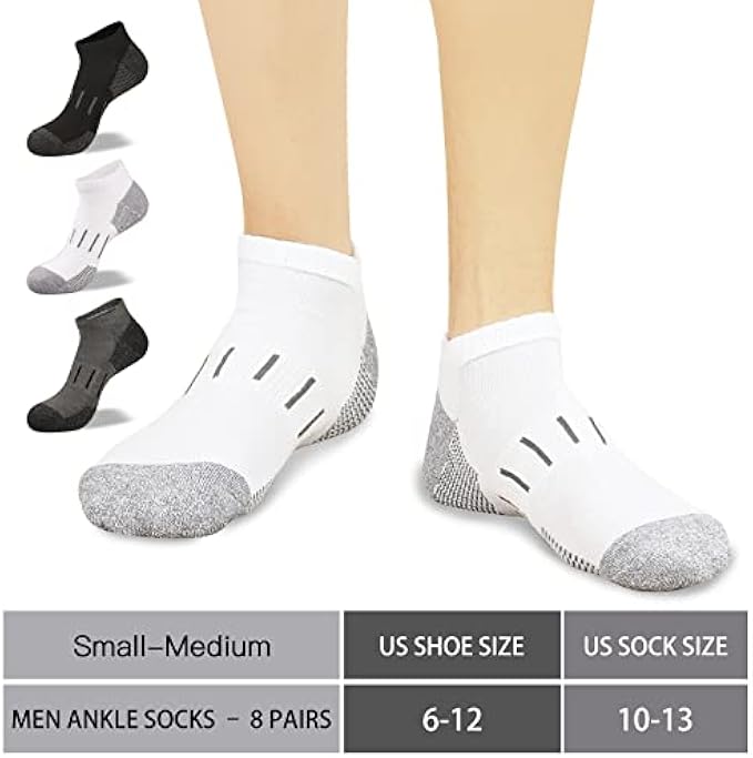 [DURABLE MENS SPORTS SOCKS]: Reinforced heel and toe enhances durability in high-wear areas to withstand multiple wears and washes, no fading, no holes. Our ankle athletic socks fit US men's shoe size 6-12, sock size 10-13.