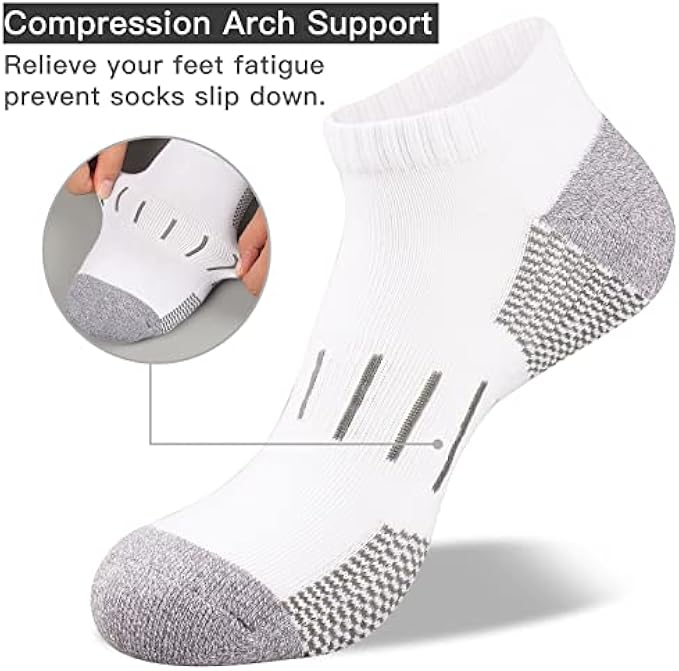 [NON-SLIP ATHLETIC SOCKS]: Running socks for men target proper compression to keep ankle socks in place. Men’s athletic socks with elastic arch band, which hugs your foot to provide perfect fit and stability.