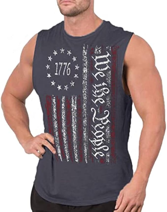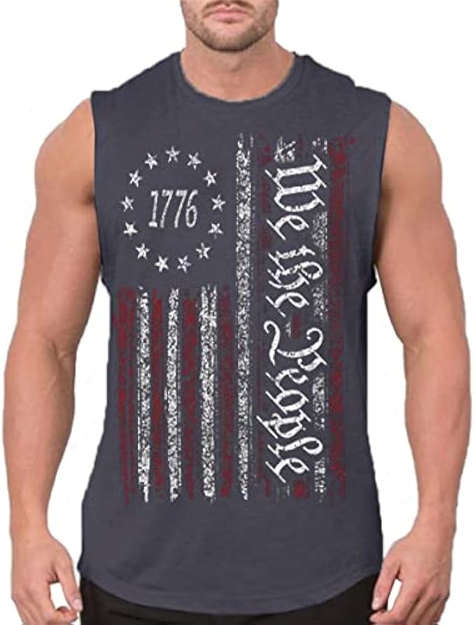 Tank Top American 1776 Tank Feature: Fashion Cotton design, Front graphic tank, Crew neck, Sleeveless, Suit for casual, sport, personality show