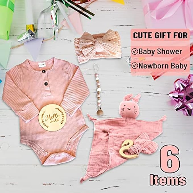 • What’s Included: These keepsake boxes include everything you need to truly welcome the new member of the family into your lives, with bunny baby comforter cotton blanket, cotton baby romper (3-6 Month), bow, duck teether, handmade pacifier chain clip and wooden Hello World sign!