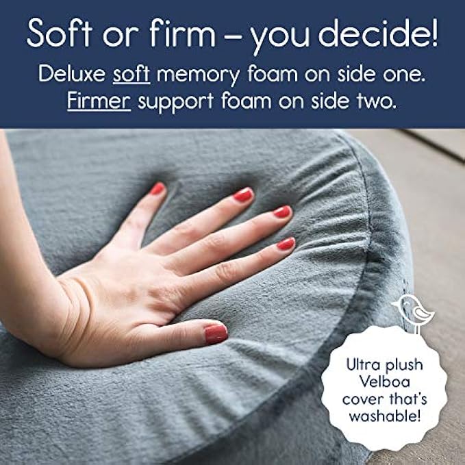 SOFT OR FIRM… YOU DECIDE: 2-sided design to suit moms during all 3 trimesters. Deluxe, soft memory foam on side 1, and firmer support foam on side 2. As your needs and desires shift from moment to moment, simply flip it over to regain maximum comfort. IDEAL SOLUTION FOR PREGNANCY DISCOMFORT.