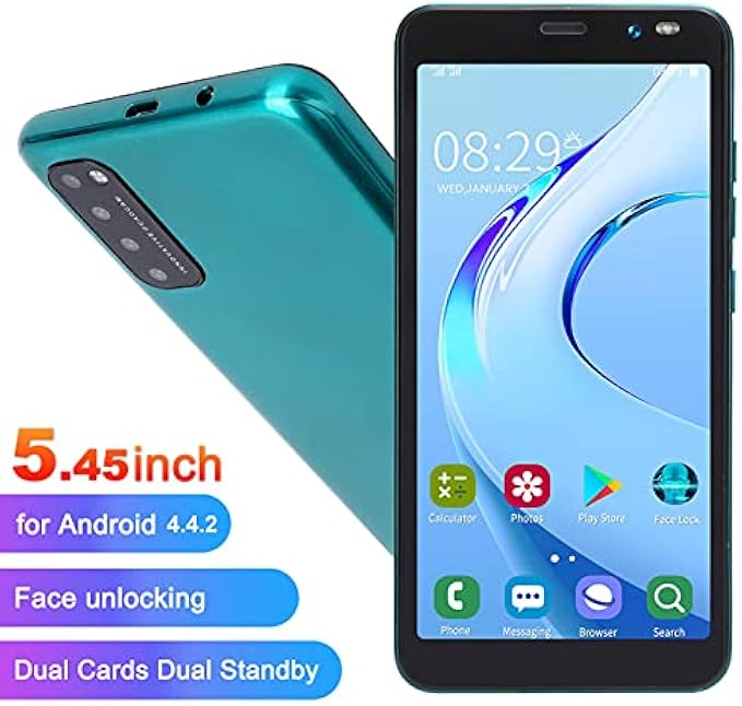 Hilitand 5.45 inch Smartphone, HD Full Screen Unlocked Cell Phones, for Android 4.4.2 Face Fingerprint Smart Phone, 512MB/4GB, HD Camera Mobil Phone, 1500mAh Battery, 128GB Extension (Green)