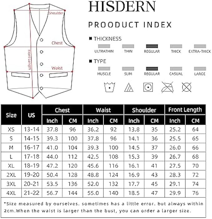 Important Tips: This mens vest sizes are not same as US size. Please check the size chart carefully on product picture instead of the Amazon size chart. Vest Care is dry cleaning, hand wash or machine wash available.