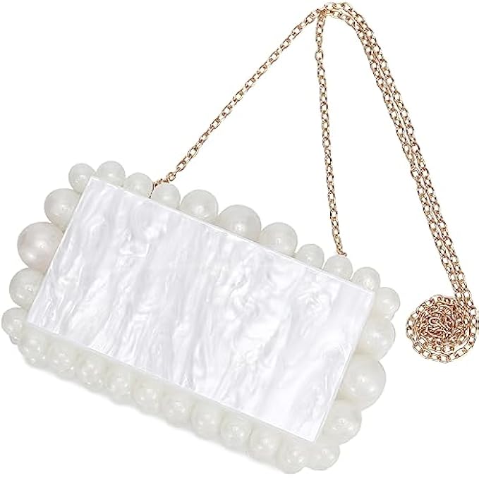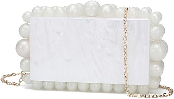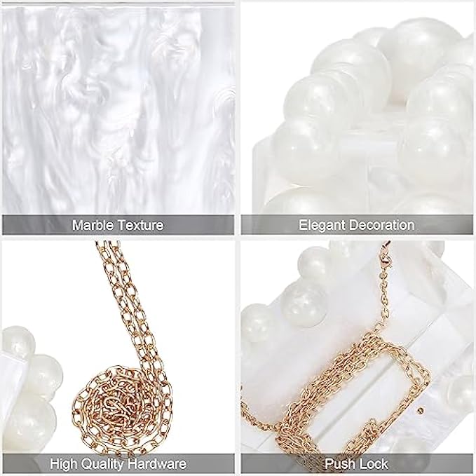 [Elegant Design] The acrylic clutch box features a beautiful pearl decoration and flashing marble texture, making it an attractive accessory for any outfit.