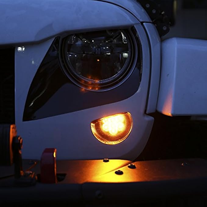 ➤ These JK turn signal lights are made of durable Light-Weight ABS plastic housing; Rust proof and shockproof. Light Source: LED Light, Lights are in Amber when turn on