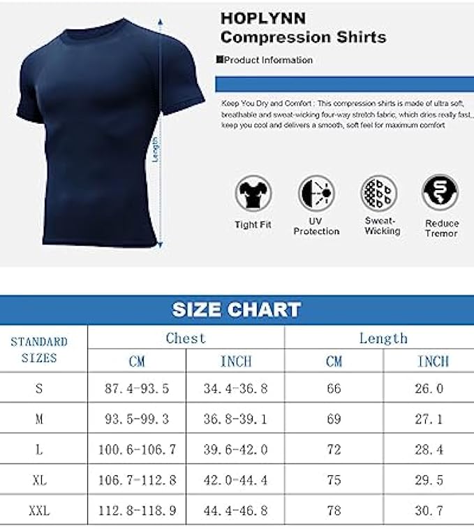 Keep You Dry and Comfort : This compression shirts is made of ultra soft, breathable and sweat-wicking four-way stretch fabric, which dries really fast, keep you cool and delivers a smooth, soft feel for maximum comfort.