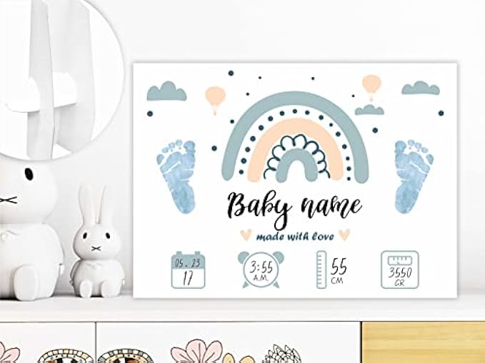 Hospital Birth Certificate | 8" x 11" Boho Rainbow Theme Baby Birth Announcement Sign | Baby Footprint Art | Footprints Keepsake for Mommy and Daddy | 1 Set - CSZ-009